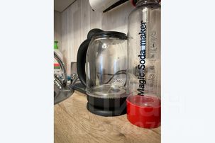 • Полностью оборудованная кухня (холодильник, плита, микроволновка, чайник, кофеварка, сифон, посуда).