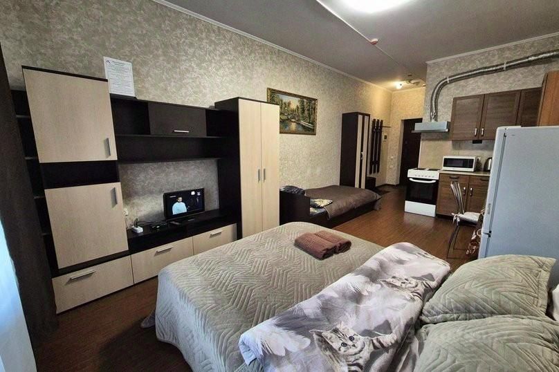 В кухонной зоне есть холодильник, стиральная машина, микроволновка, чайник, посуда, мини бар. Гостям предоставляется вода, чай, сахар. Всегда есть горячая вода от водонагревателя