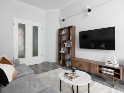 Стильные трехкомнатные апартаменты в 5 минутах от метро Улица 1905 года с видом на тихий московский дворик. Мы уверенны, вам здесь понравится! В квартире две изолированные спальни с гардеробными комнатами. Необычная и приятная особенность квартиры - это наличие просторной застекленной лоджии с зоной для отдыха. Здесь вы можете насладиться приятной беседой за чашкой чая или просто уединиться и отдохнуть на мягком диване в прохладе летнего вечера.