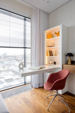 При ремонте использовались только натуральные качественные материалы: на полу доска натуральный Американский орех, декоративная штукатурка на стенах, стулья BoConcept, диван Olissys с опускающимся пружинным полноценным матрасом, парящий рабочий стол Olissys ( опускается одним нажатием), сантехника Grohe, Villeroy&Boch, Omoikiri, травертин,