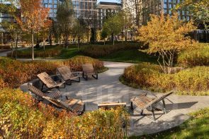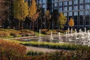 Общее парковое пространство квартала 5,5 га, из них 3 га отведено под частный парк эксклюзивно для резидентов. Большой фонтан, аллеи для прогулок, крупномерные деревья, арт-инсталляции, водные глади, детские площадки и воркаут-зона создают гармоничное сочетание жизни.