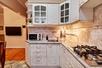 При входе в квартиру вы сразу почувствуете ее особое очарование. В гостиной вы найдете удобные диваны и кресла с изысканным дизайном, здесь вы можете отдохнуть после долгого дня
