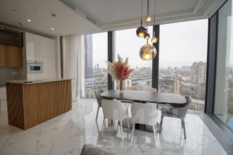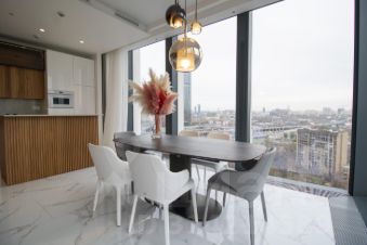Выполнена премиальная дизайнерская отделка в современном стиле, полная комплектация бытовой техникой и мебелью.