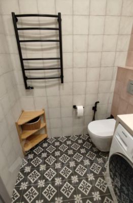 - тёплые полы в санузлах, электрические полотенцесушители, аквастопы, стиральная машина с сушкой;