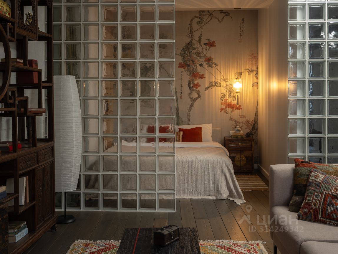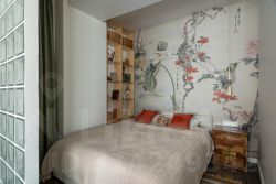 Спальня с двуспальной (160Х200) кроватью отделена от зала перегородкой с блэк-аут шторами. Просторный зал с тематическим декором в Китайском стиле и большим зеркальным гардеробом подарит настроение чайной церемонии.