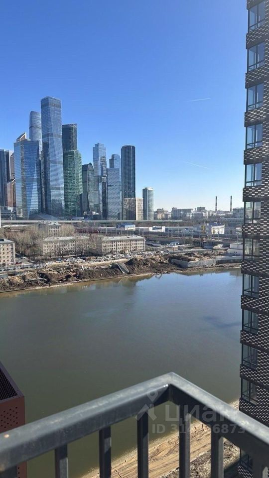 Квартира находится на высоком этаже, из панорамного окна и балкона открывается вид на реку и башни Сити.