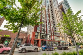 Рядом с домом есть продуктовые магазины (Вкусвилл) и несколько пекарен, аптеки, почта и библиотека.
