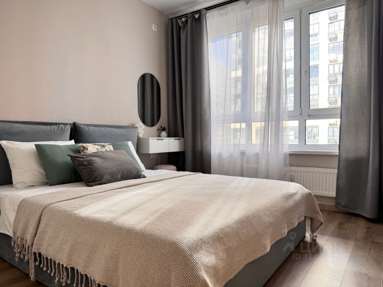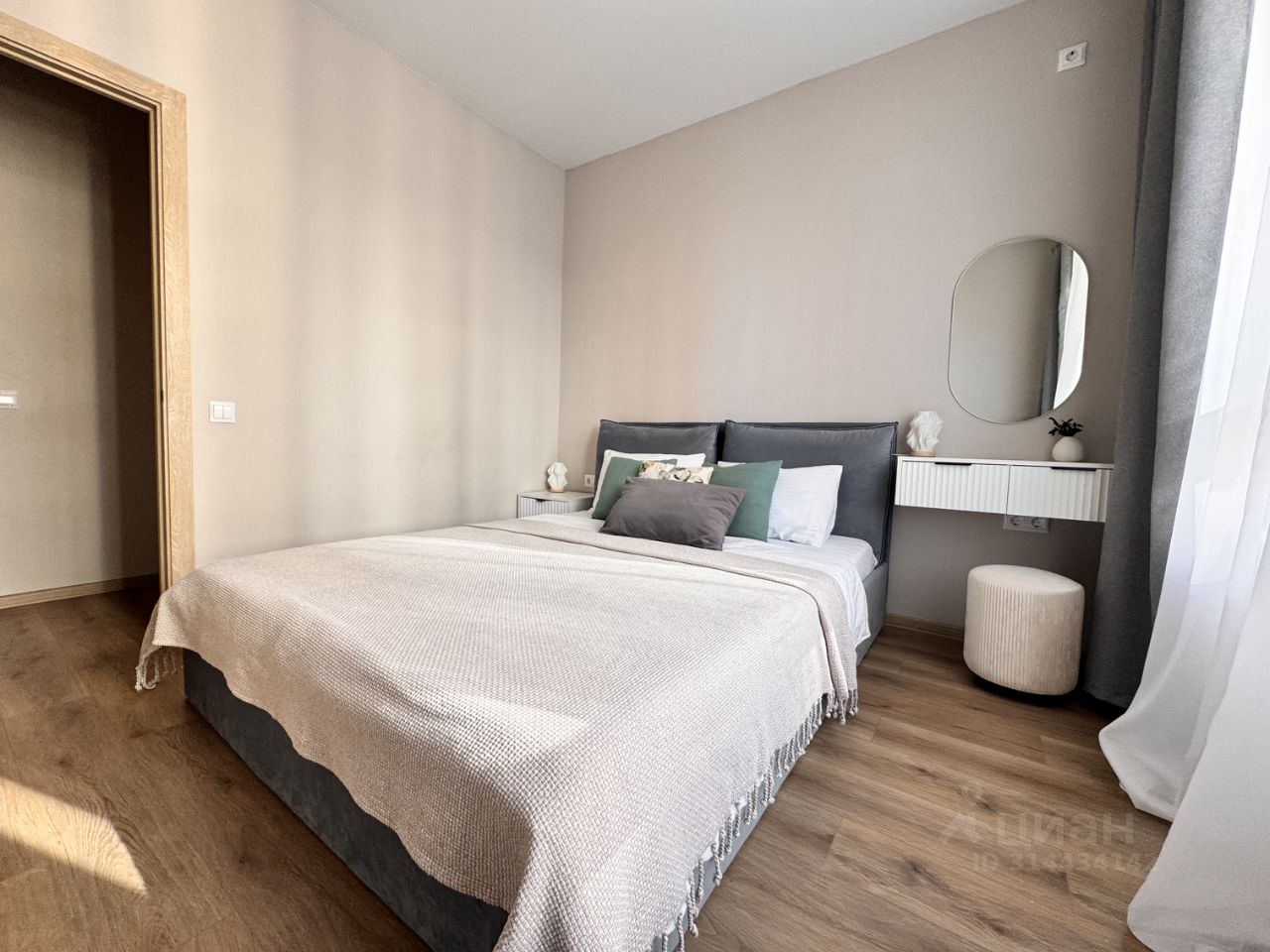 Спальня: Кровать 160200, ортопедический матрас, хлопковые постельное белье, туалетный столик