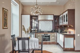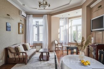 Несмотря на то, что дом расположен в самом эпицентре вечерней жизни, шум почти полностью стихает до полуночи. Высокий пятый этаж и качественные окна способствуют спокойному сну, но если вы особо чувствительны, мы оставим для вас беруши — ведь локация того стоит.