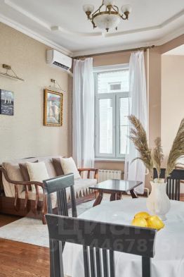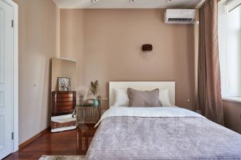 Площадь квартиры 73 квадратных метра, в ней много света и воздуха благодаря 8 большим окнам и потолкам 3,2 м. Два кондиционера помогут создать комфортный климат.