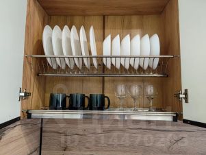 Оборудованная кухня с плитой, посудой для сервировки и готовки, холодильником, свч и раскладным двуспальным диваном (спальное место 140х200).