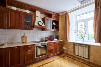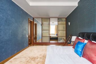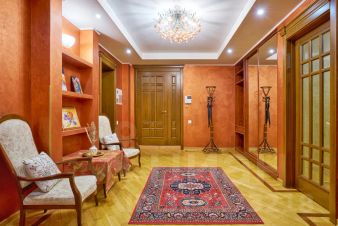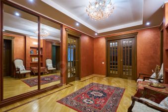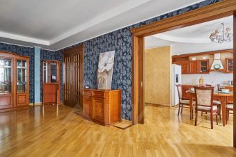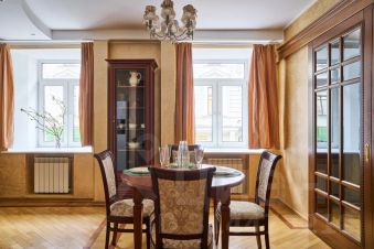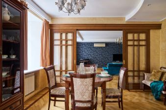 3-комнатная квартира 170 кв. м с высокими потолками порадует вас не только простором, но и продуманной планировкой. Окна кухни и гостиной выходят в атмосферно пешеходный переулок. А две спальни расположены по другую сторону от прихожей — окнами в тихий двор. В народе подобную планировку называют "распашонкой", но эта даже лучше.