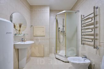 В квартире 2 санузла: один гостевой с душем, второй в мастер-спальне с ванной и душевой кабиной. В них есть шампунь, гель для душа, мыло, ватные диски и палочки, фен, стиральная и сушильная машины со средством для стирки.