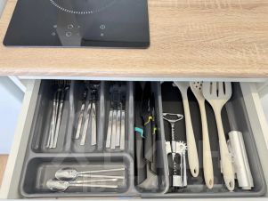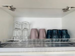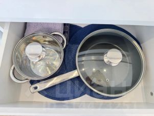 Микроволновая печь, холодильник, плита, вытяжка, вся необходимая посуда для приготовления еды и сервировки стола