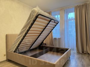 В комнате полноценная двуспальная кровать, с подъемным механизмом. Есть шкаф для хранения вещей.