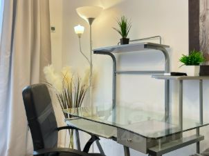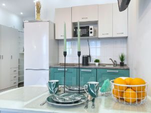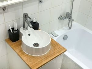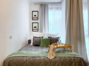 Квартира оборудована всем необходимым: двухспальная кровать, раскладной диван, кондиционер есть, летом :) отдохнёте в уютной прохладе, санузел с ванной, свежее постельное бельё с комплектом воздушных полотенец, средства личной гигиены, фен, утюг, гладильная доска, напольная сушилка, бытовая техника, безлимитный Wi-Fi, Smаrt ТV, столовые приборы, необходимая посуда для приготовления пищи.