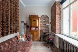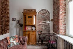 Остановитесь в уникальной квартире на Мясницкой улице, 21/8с5 — это не просто жильё, а возможность погрузиться в дух старой Москвы. Интерьер выполнен в винтажном стиле: кирпичная кладка, высокие потолки, антикварная мебель и элементы декора создают особую атмосферу, которую особенно ценят гости, ищущие необычные места с характером.