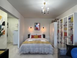 В квартире для вас удобная двуспальная кровать 160х200, комфортный двуспальный диван 150х200, бесплатный Wi-Fi, телевизор с онлайн кинотеатром Wink, холодильник, фен, гладильная доска, сушка для белья, утюг, стиральная машинка, микроволновка, электрический чайник, газовая плита, набор посуды и столовых принадлежностей для всех гостей, кастрюли, сковородки.