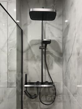 Санузел: совмещенный, современная душевая система с подсветкой и подсчетом количества времени, которые вы провели там. Смеситель с подсветкой.