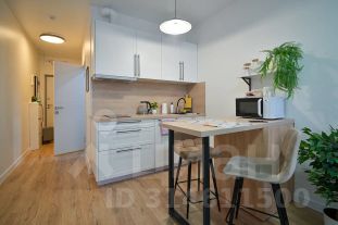 Студия с абсолютно новым дизайнерским ремонтом. В квартире могут разместиться одновременно от 1 до 2 человек. Лоджии нет, поэтому курящим гостям надо будет выходить на улицу. Третий этаж позволяет сделать это быстро)