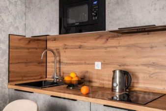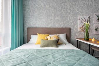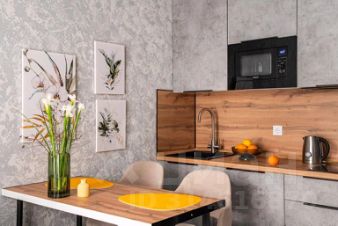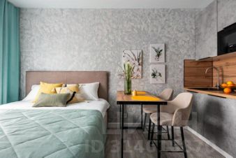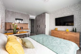 Квартира для 2 гостей. В квартире есть мультимедиа: Wi-Fi, телевизор со Смарт-ТВ, бытовая техника: холодильник, плита, фен, утюг, стиральная машина, микроволновая печь, посудомоечная машина, кондиционер. Дополнительно: полотенца, постельное бельё, средства личной гигиены, комплект посуды и столовых приборов. Спальное место: кровать и раскладной двуспальный диван, в наличии шторы блэк-аут.