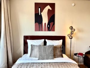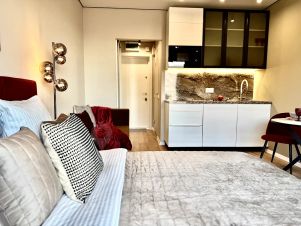 - В квартире есть вся бытовая техника и мебель (фен, утюг, гладильная доска, стиральная машина, плита, холодильник, свч-печь, обеденная зона, шкафы, посуда для приготовления пищи и т. Д. );
