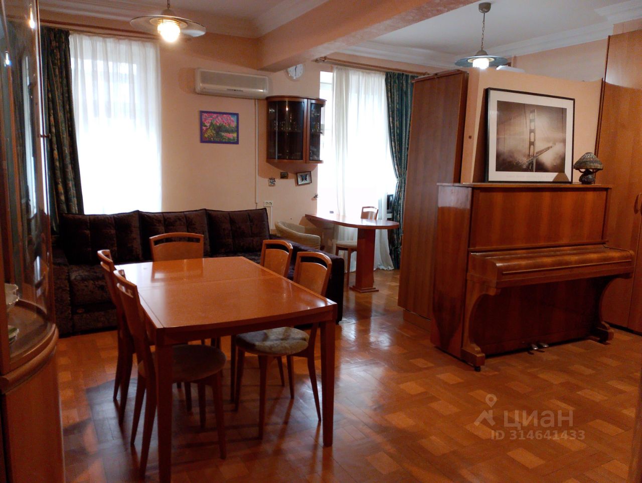 Две отдельные большие спальни 22 (два окна, балкон) и 18 кв.м. Просторная гостиная (два окна, балкон) совмещена с кухней 32 кв.м. Два отдельных санузла с душевой кабиной и ванной. Высокие потолки 3,2 метра. На полу натуральный паркет и паркетная доска.