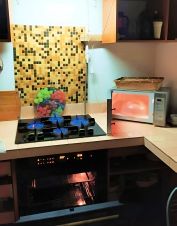 Италия плитка кухня/мрамор пол с подогревом/высокий барный стол/пьезо плита/барные стулья/микроволновка/тостер/соковыжималка/паровар ка/мясорубка/фен/утюг/посуда/стекло/белье и полотенца IKEA/аксессуары/отдельный кран с новой Трехступенчатой системой очистки!/кофеварка с капучино!/жалюзи/пылесос/встроенная кухня/стиралка/новыц духовой шкаф/Wi-Fi/большой стол+3 кресла к нему/2 больших пуфика для отдыха/две входных двери