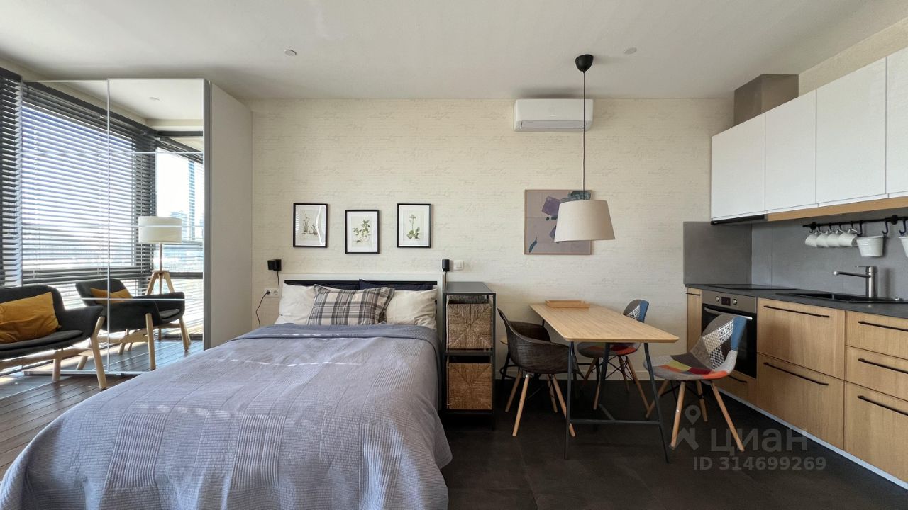 Прямой вид на парк Ходынское поле и небоскрёбы Москва-сити, солнечная сторона, общая площадь квартиры 32 кв/м.
