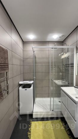 В санузле имеется душевая кабина, также там располагается стиральная машина. Пол уложен керамо-гранитными плитами с регулируемым электроподогревом.