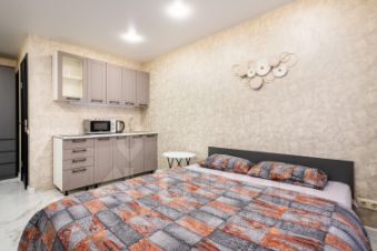 В наличии холодильник, полотенцесушитель, электрическая плита, микроволновка, стиральная машина, телевизор, фен и утюг.