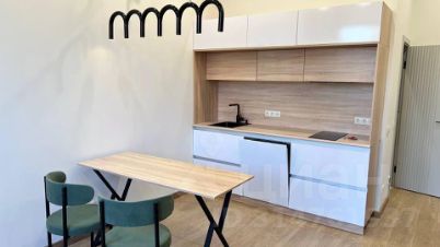 В квартире сделан современный евроремонт. Планировка включает две комнаты, гардеробную и совмещённый санузел с душевой кабиной. Квартира полностью меблирована: мебель есть как на кухне, так и в комнате. Для комфортного проживания предусмотрена вся необходимая техника: кондиционер, холодильник, посудомоечная и стиральная машины.