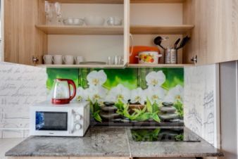 Современная мебель, двуспальная кровать, бытовая техника, скоростной WI-FI, спутниковое TV, гладильная доска, сушилка для белья, фен, оборудованная кухня, полный комплект посуды для приготовления и приёма еды