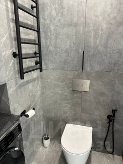 Санузел: современная сантехника, стиральная машина с сушкой, водонагреватель.