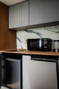 4. Полный комплект посуды на троих, столовые приборы и всё необходимое для приготовления домашних завтраков, обедов, ужинов!