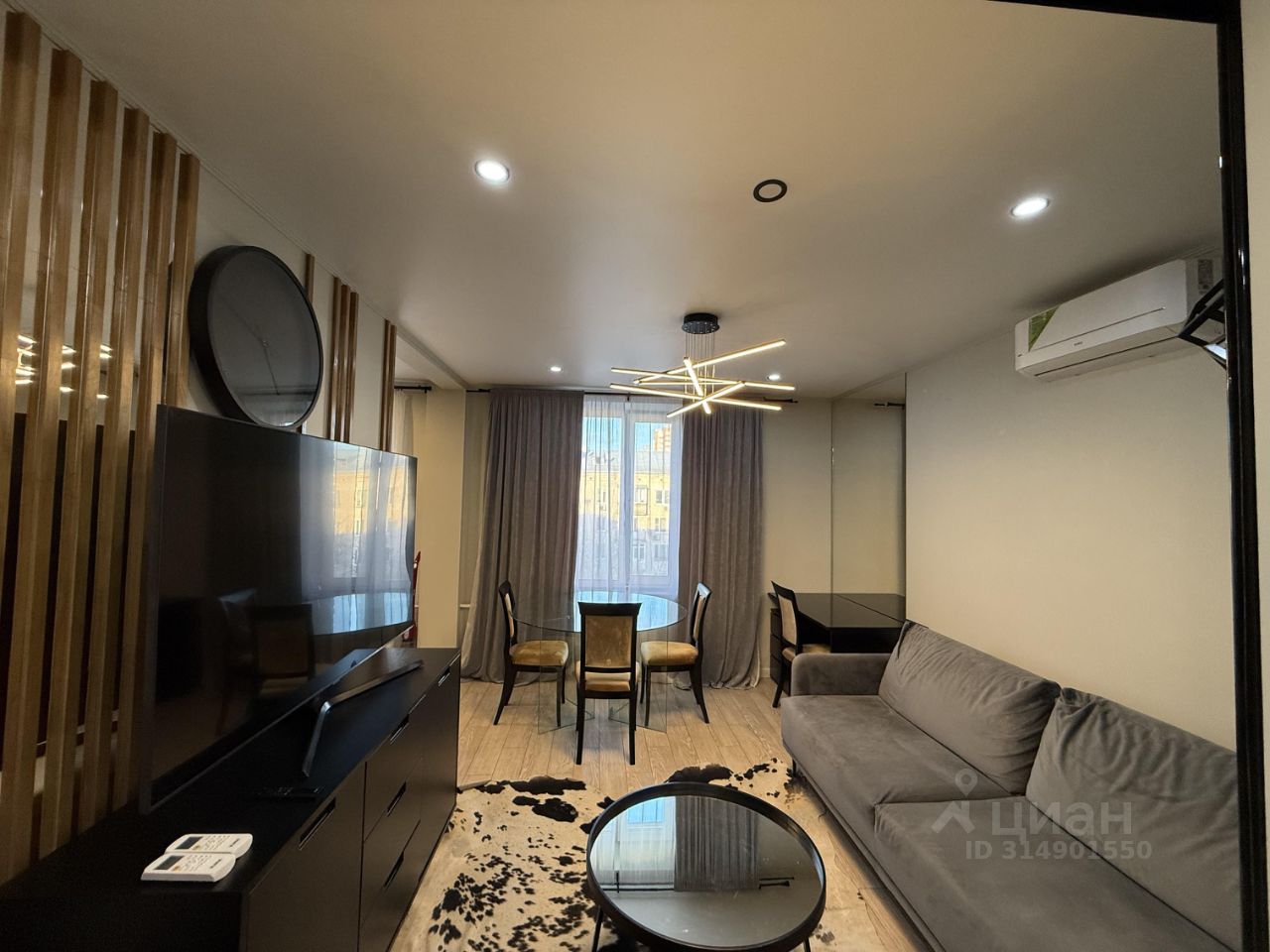 Квартира с дизайнерским ремонтом: современный интерьер и удобная планировка. В наличии вся необходимая мебель на кухне и в комнате. Из техники есть кондиционер, холодильник, посудомоечная и стиральная машины, телевизор. Санузел совмещённый, оборудован ванной. Балкон также имеется, что позволяет наслаждаться свежим воздухом, не выходя из дома.