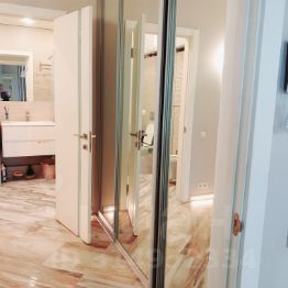 Квартира полностью меблирована: есть мебель как в комнате, так и на кухне. Установлена вся необходимая техника: кондиционер, холодильник, посудомоечная машина, телевизор на кухне и комнате, стиральная машина. Санузел совмещенный, оборудован душевой кабиной. Высокоскоростной интернет подключен.