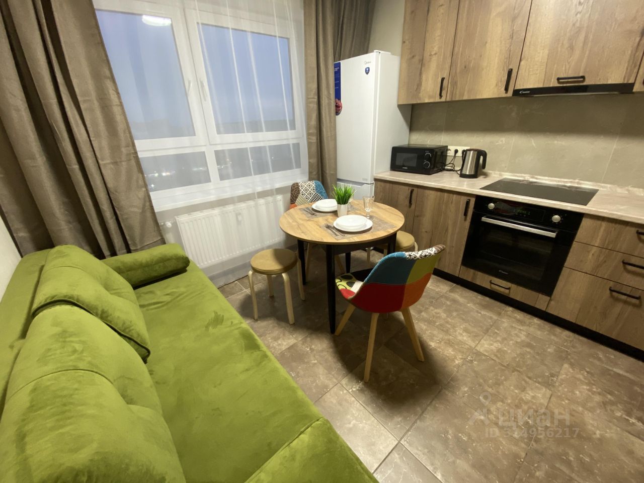 Диван расположен на кухне!
