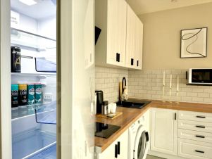 - Стильная кухня в полной комплектации. Энергия творчества у удобной барной стойки — идеального уголка для работы, бесед или неспешного завтрака. Мини-бар позволит вкусно перекусить в перерыве между делами.