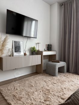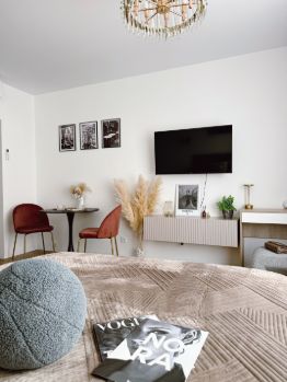 -вся необходимая бытовая техника: ЖК телевизор смарт, холодильник,электроплита , кондиционер, СВЧ, электрочайник -столовые приборы, посуда, сковородки, кастрюли