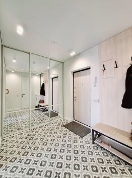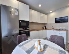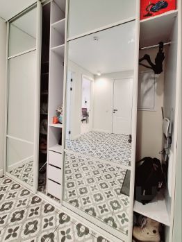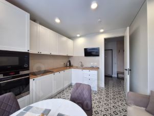 Большая кухня-гостиная, отдельная спальня, большой шкаф-купе в просторной прихожей, гардеробная. В санузле теплые полы, есть водонагреватель на период отключения горячей воды. Кондиционер в спальне.