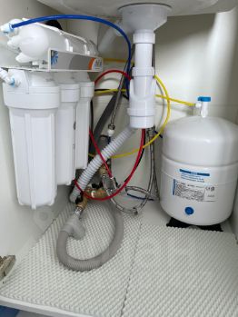 В кухне установлена посудомойка ( куплены таблетки для нее) ,обратный осмос для очистки воды ( можно пить из крана) , индукционная плита и встроенный холодильник с микроволновкой. Посуда и столовые приборы имеются .