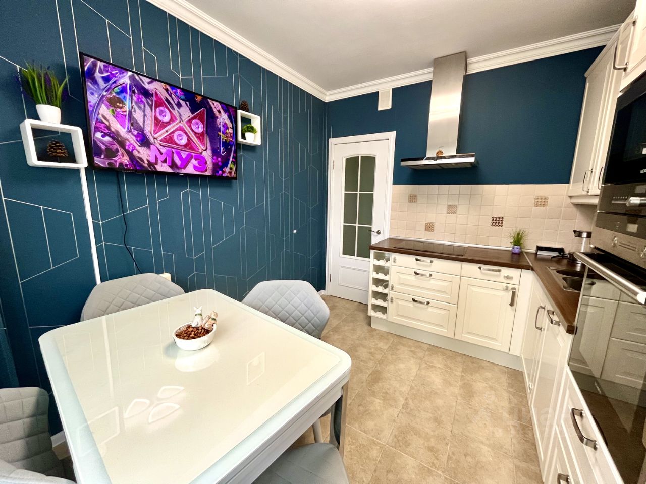 В квартире есть всё необходимое для комфортного проживания: кондиционер, холодильник, посудомоечная машина, телевизор и стиральная машина. На кухне и в комнате установлена мебель. Ванная комната оборудована современной сантехникой и ванной. Планировка продумана до мелочей, чтобы вы могли наслаждаться удобством и уютом.