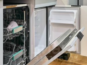 Кухня, оборудованная необходимой бытовой техникой и посудой (микроволновая печь, варочная панель, холодильник, столовые приборы, бокалы, кастрюли и прочее)