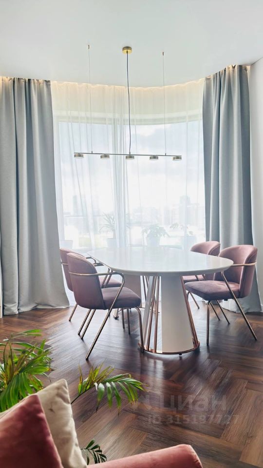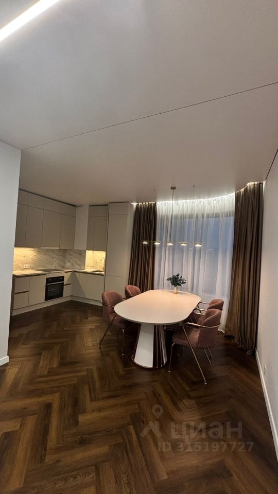 Изолированные комнаты, гостиная-кухня, две спальни, гардеробная, санузел. Встроенный кухонный гарнитур со всей бытовой техникой - варочная панель, духовой шкаф, посудомоечная машина, стиральная машина, холодильник, кондиционеры (Samsung, Haier, Hisence, Enzahome). Система очистки воды Барьер. Дневная завеса и шторы blackout. Различные варианты освещения. Wi-Fi, телевизор, видео-проектор в мастер-спальне.