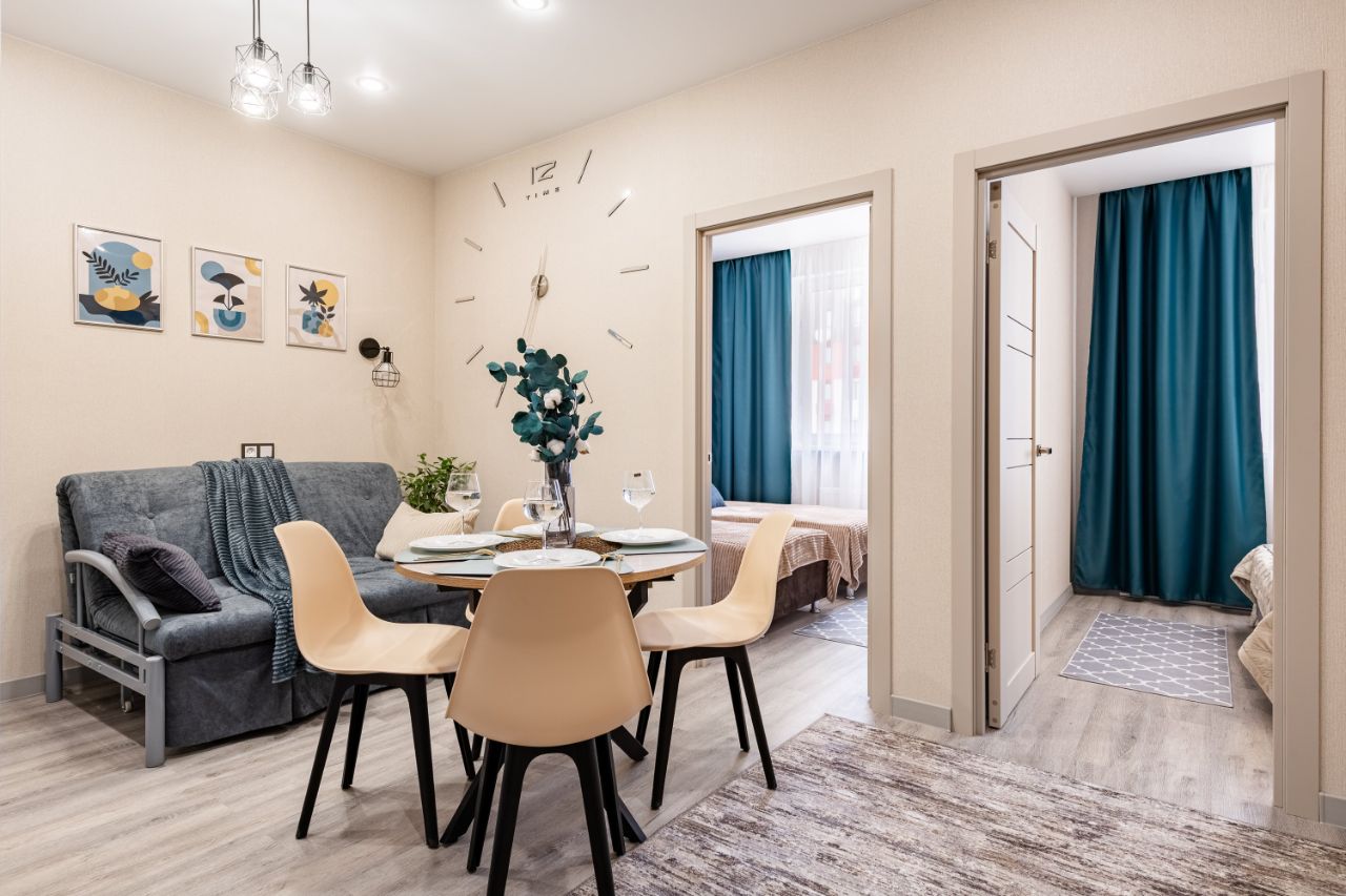 Для Вашего удобства в отдельных комнатах одна широкая двухспальная кровать (160см) и две просторные (90см) односпальные кровати. На кухне двуспальный ортопедический диван (140см).