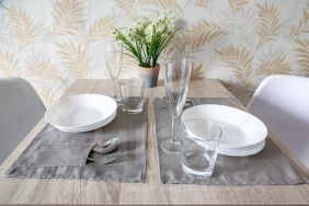 Современная мебель, двуспальная кровать, бытовая техника, скоростной WI-FI, спутниковое TV, гладильная доска, сушилка для белья, фен, оборудованная кухня, полный комплект посуды для приготовления и приёма еды