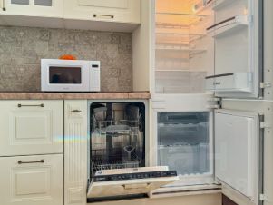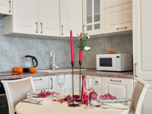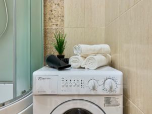 Квартира оборудована всем необходимым: двухспальная кровать, раскладное кресло, санузел с душевой, свежее постельное бельё с комплектом воздушных полотенец, средства личной гигиены, фен, утюг, гладильная доска, напольная сушилка, бытовая техника, столовые приборы, необходимая посуда для приготовления пищи.
