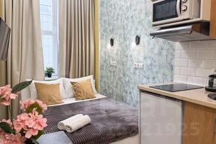 Студия полностью оборудована для комфортного проживания: телевизор, бесплатный Wi-Fi, стиральная машина, утюг, фен, варочная панель, чайник и микроволновка. Есть штопор и бокалы. Регулярная уборка профессиональной химией и дезинфекция от насекомых, а также смена белья на чистое и свежее проводятся перед каждым заездом.