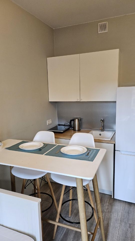 В студии есть все необходимое для комфортной жизни: современная мебель, новая бытовая техника, много мест хранения, плита, посуда, мультиварка, утюг, кондиционер,смарт тв, интернет. Прекрасный вариант для релокантов или работы удаленно.